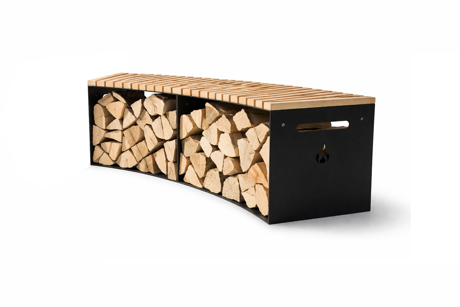 Dzięki otwartej dolnej przestrzeni ławka może pełnić funkcję praktycznego schowka – idealnego na drewno opałowe lub inne akcesoria ogrodowe. To doskonałe rozwiązanie do ogrodu, na taras, patio czy w pobliże kominka zewnętrznego.