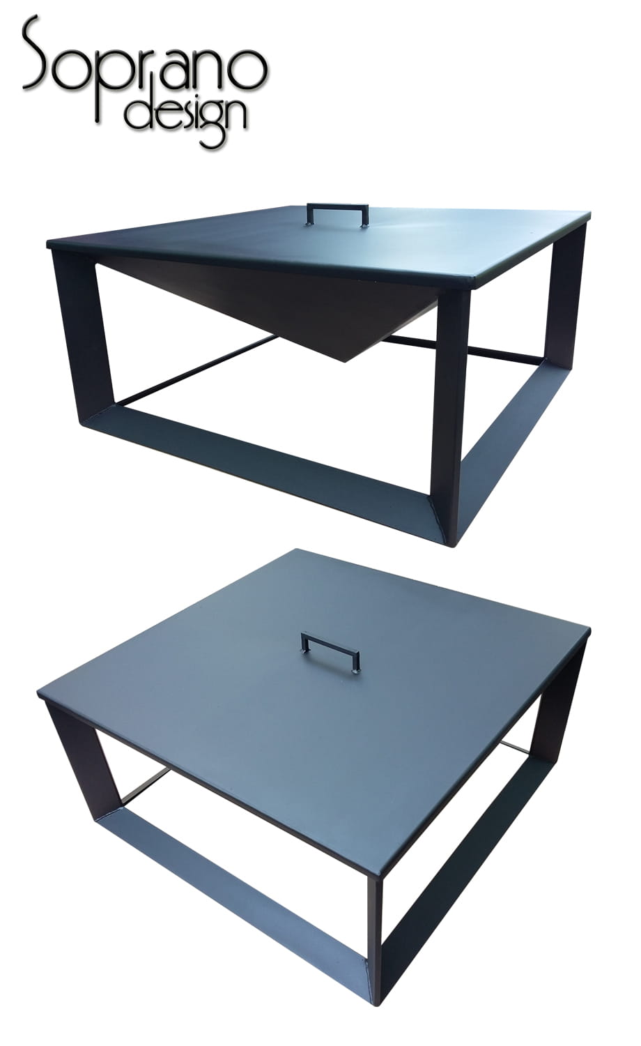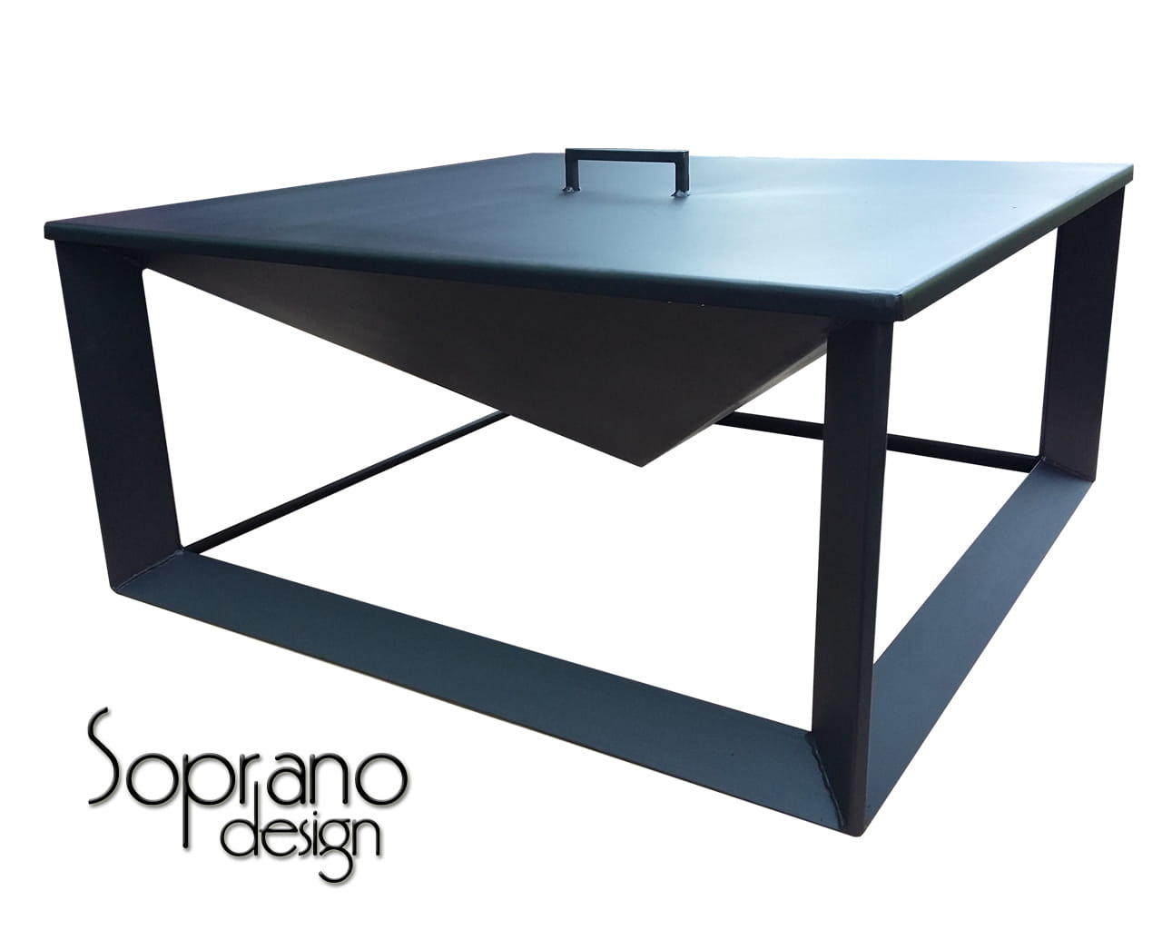 Pokrywa Paleniska Sopranodesign 90x90 - Pokrywa do paleniska ogrodowego o standardowym wymiarze 90x90 wykonana z blachy czarnej pomalowanej farbą żaroodporną z pomocnym uchwytem. Pokrywa zabezpiecza palenisko przed zbieraniem się wody jak i służy do wygaszania paleniska co zwiększa bezpieczeństwo.