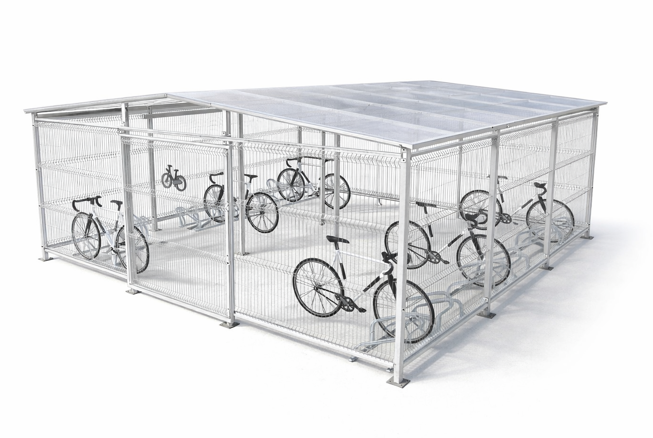 Wiata rowerowa zamykana Saturn 6x6 m Ocynk + Lakier na 30 rowerów