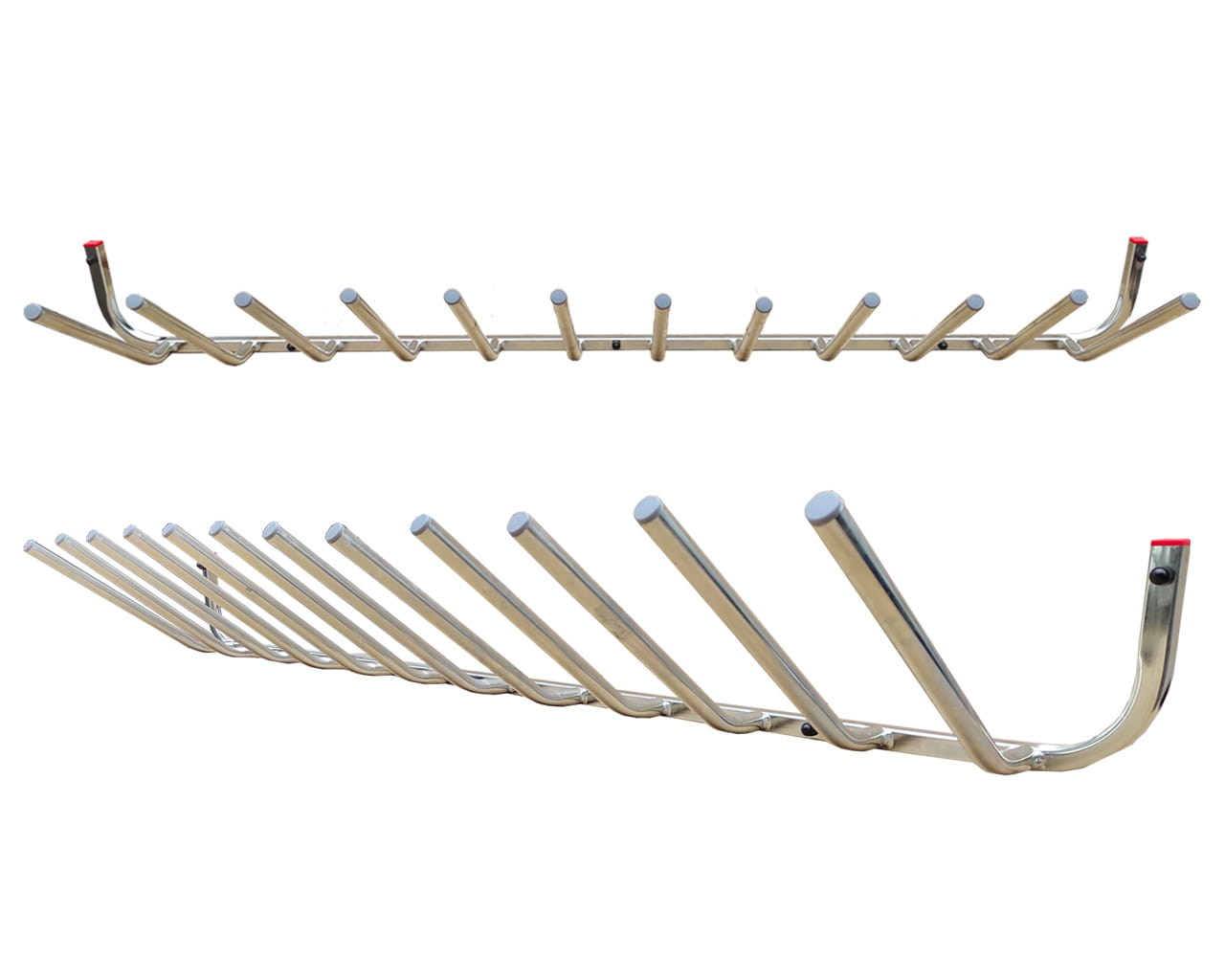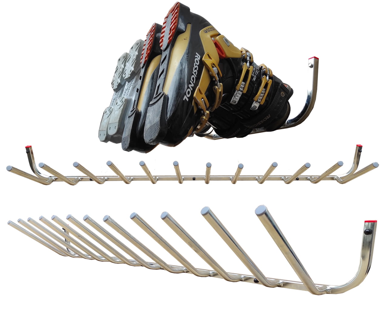 Wieszak na buty (Narciarskie, Snowboardowe, Łyżwy, Rolki itp) – wieszak przeznaczony do przechowania butów w trakcie i poza sezonem , podgięcie na rurce zabezpiecza nam but przed spadaniem jest on umieszczony czubkiem w dół co pozwala na spłynięcie zalegającego lodu śniegu po konstrukcji buta . Wieszak możemy zamontować bezpośrednio nad wieszakiem na narty z naszej kolekcji co pozwoli nam zachować dużo przestrzeni i zagwarantuje estetykę pomieszczenia.