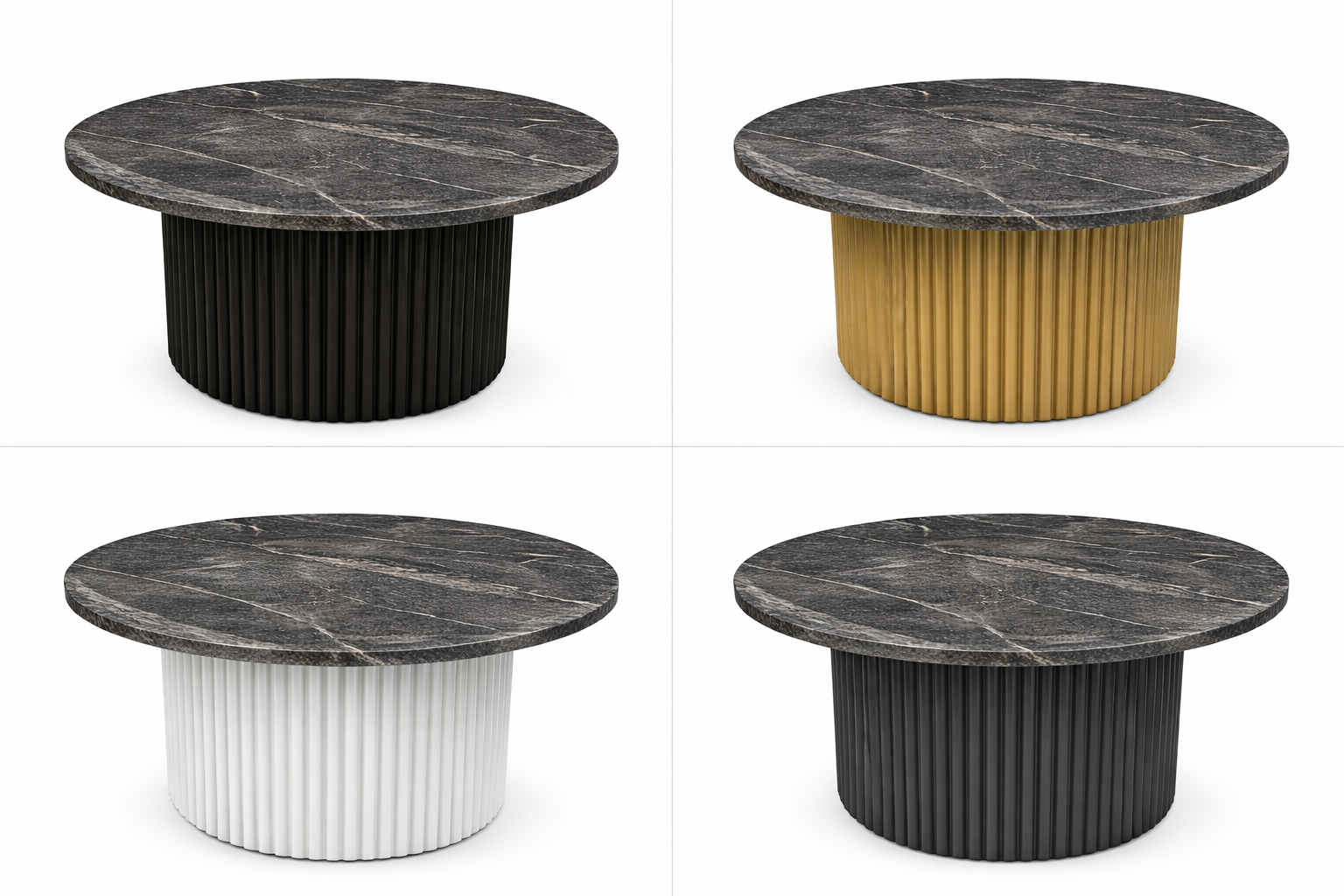 Wybór blatu pozostawiamy do państwa wyboru. Zestaw stolików daje dużą elastyczność – możesz ustawić je razem jako kompozycję lub rozdzielić w różnych miejscach. To praktyczne i stylowe rozwiązanie, które podkreśli charakter Twojego wnętrza.